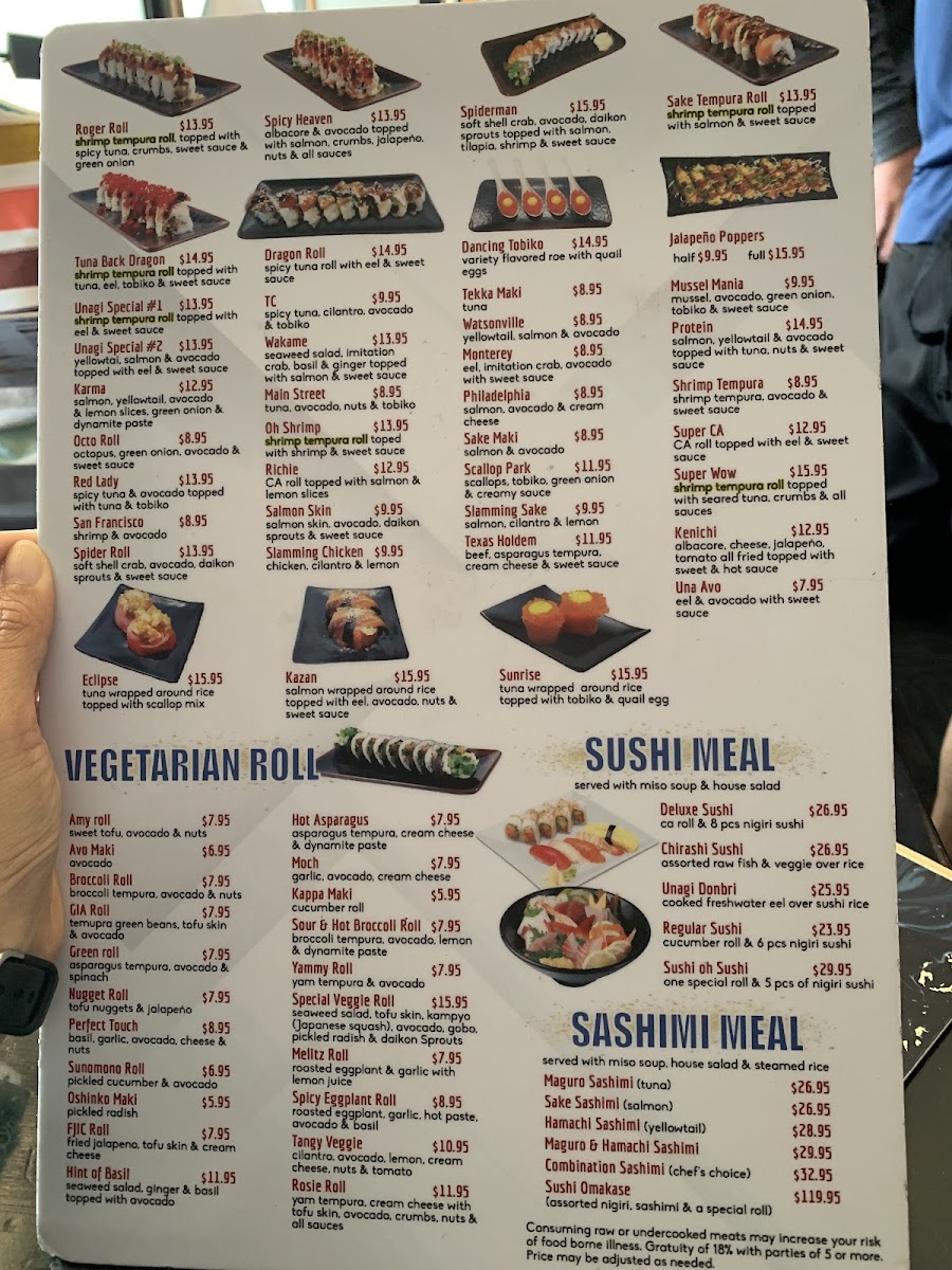 eel, imitation crab, avocado topped with tuna, avocado & sweet sauce